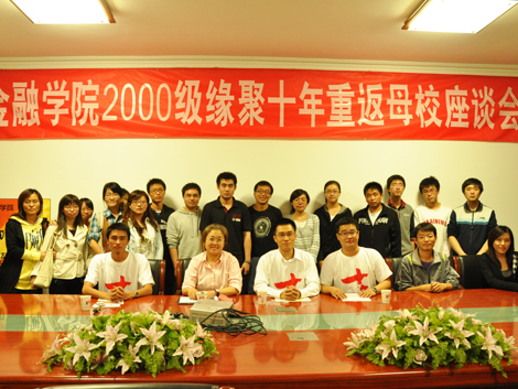 2010 年9月20日 晚,金融学院2000级缘聚十年重返母校座谈会暨“分享职业规划”校友论坛在博学925温馨开场。白艳老师及2000级校友韩会师、林飞鹏、张献出席本次校友座谈会。